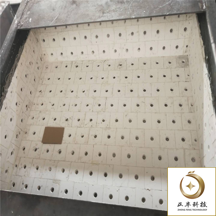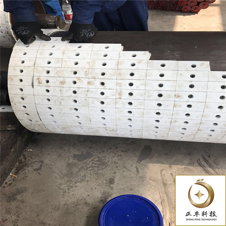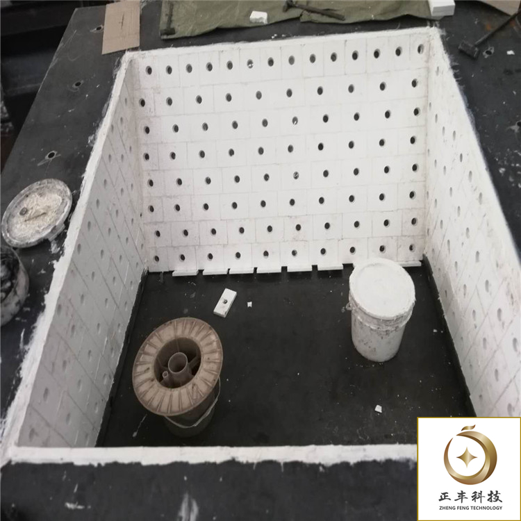 (2)耐磨陶瓷衬板背面均匀涂抹陶瓷粘贴胶,厚度约1.5-2mm,涂胶时应避开焊接孔,防止焊接孔堵塞,造成后期焊接不牢固。
