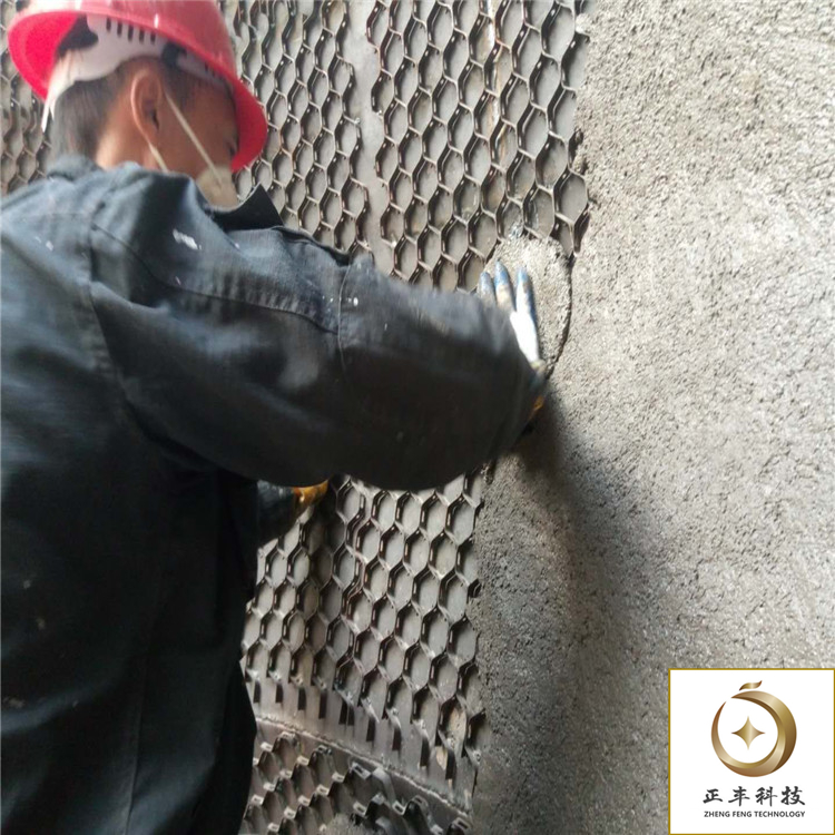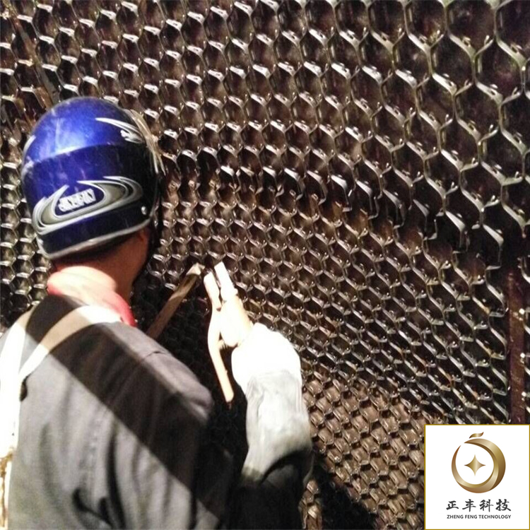 (1)龟甲网焊接:在设备表面上焊接龟甲网,龟甲网采用电弧焊焊接,每个接触骨架空格内双面焊接,焊点间距约20毫米。其焊点抗拉强度平均值:380Mpa抗压强度平均值:560Mpa。