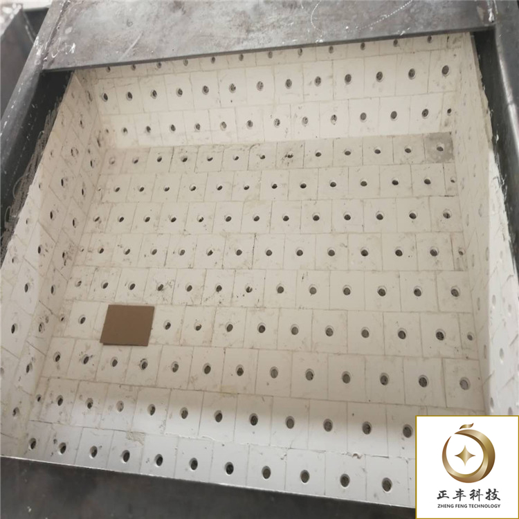(2)耐磨陶瓷衬板背面均匀涂抹陶瓷粘贴胶,厚度约1.5-2mm,涂胶时应避开焊接孔,防止焊接孔堵塞,造成后期焊接不牢固。